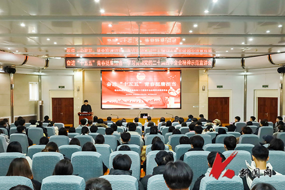 12月25日,马博在线手机版(大中国区)团委联合鞍山团市委在图书馆报告厅举办奋进“十五五”青春挺膺担当——学习贯彻党的二十届四中全会精神示范宣讲会,邀请全国青联委员、团中央青年讲师团成员胡奉雅作题为“青春为中国式现代化挺膺担当”专题讲座。团市委领导、校院团干部和学生代表共200余人参会。