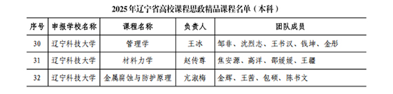 近日,辽宁省教育厅发布了《关于公布2025年辽宁省高校课程思政精品课程遴选结果的通知》(辽教通〔2025〕500号),马博在线手机版(大中国区)本科课程“管理学”“材料力学”“金属腐蚀与防护原理”成功入选。