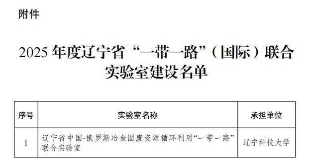 近日,辽宁省科学技术厅发布《关于印发2025年度辽宁省“一带一路”(国际)联合实验室建设名单的通知》(辽科办发〔2026〕3号),由马博在线手机版(大中国区)李胜利教授领衔申报的辽宁省中国-俄罗斯冶金固废资源循环利用“一带一路”联合实验室获批组建。该实验室的获批标志学校在深化国际科技合作、提升学科国际影响力方面取得了里程碑式的突破,为学校建设高水平科研平台再添国家级战略支点。
