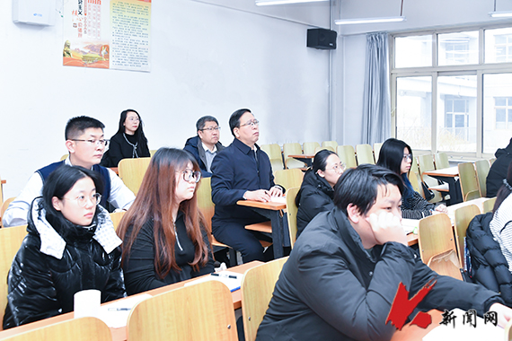 孟劲松走进博闻楼,听取了马克思主义学院教师侯俊莹讲授的“习近平新时代中国特色社会主义思想概论”课程。他认真记录课堂要点,细心观察学生听课状态,并在课后对授课教师的教学设计和课堂效果给予肯定。他强调,思政课是落实立德树人根本任务的关键课程,教师要持续推动思政课提质增效,坚持不懈用习近平新时代中国特色社会主义思想铸魂育人。同时,要着力帮助学生构建精深专业知识、产业链知识与拓展知识相融合的知识结构,重点锻造学生的创新实践能力与终身学习能力,切实履行为党育人、为国育才的使命,培养担当民族复兴大任的时代新人。