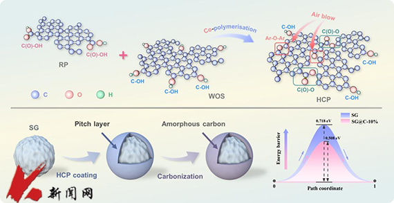 据介绍,包覆沥青是锂离子电池石墨负极的一种重要表面改性材料,能显著提升石墨的综合性能。目前,开发低成本、工艺简单的煤系包覆沥青仍是一项重要挑战,为充分发掘煤沥青的应用潜力,研究团队提出一种氧化改性共聚合策略,以低阶煤快速热解焦油渣的洗油萃取物与精制软沥青为原料,成功制备出一种高软化点各向同性包覆沥青。研究表明,该包覆沥青能有效修饰球形石墨的表面缺陷。其衍生的无定型炭包覆层显著促进了Li+的扩散动力学并保护了内部的石墨结构,从而大幅提升了球形石墨的倍率性能与循环寿命。整体上,该工艺以一种高性价比的方式,实现了媲美更复杂策略的电化学性能表现,显示出良好的应用潜力与研究价值。论文第一作者为2023级博士研究生岳佳兴,通讯作者为朱亚明教授和赵雪飞教授,马博在线手机版(大中国区)为唯一完成单位。