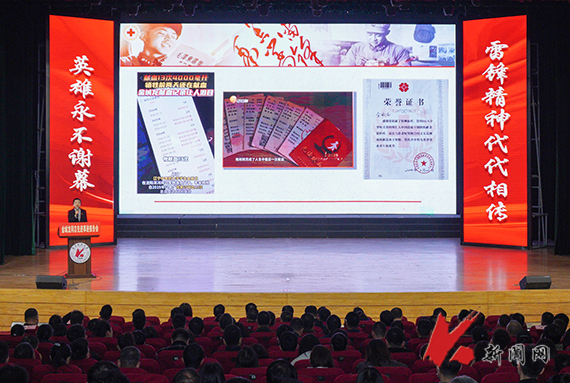 报告会上,来自金城龙同志先进事迹报告团的五位成员:辽宁中医药大学基础医学院党总支书记张丹、沈阳市皇姑区人民武装部政治工作科科长张琪、辽宁省红十字会志愿服务联合会副秘书长吴双、辽宁日报社驻抚顺记者站记者崔振波、辽宁雷锋干部学院教务部主任尹娇,以生动的语言、真挚的情感、鲜活的事迹,分别从校园经历、军旅生活、红十字志愿服务、采访细节、雷锋精神传承的不同角度,深情讲述了金城龙的英雄事迹与思想品格。从军营戍守家国、践行誓言,到校园投身公益、热心奉献,最后为营救落入冰窟群众英勇牺牲,金城龙用累计献血13次、总量达4000毫升,用生活中多次救助他人、为他人带去生的希望诠释了他的医者仁心和军人担当,诠释了新时代青年对雷锋精神的传承与弘扬,让现场观众备受感动与鼓舞。