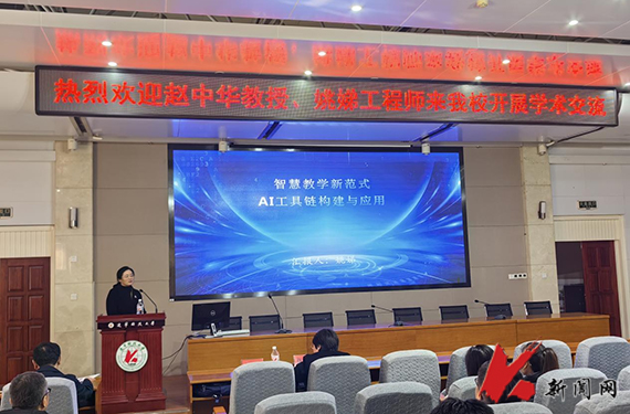 赵中华以“智启新程:AI赋能高校数字化教学多维创新实践”为题,系统阐述了AI技术驱动下教育领域的深刻变革。她认为,高校数字化教学正步入机遇与挑战交织的转型关键期,AI技术将为传统教学模式带来革命性影响。通过七个维度的实践案例,她具体展示了AI在教学设计、BOPPPS教学模式优化、教学资源升级等场景的应用价值,并结合各学科发展特点,提出智能时代高校教师的成长路径——向AI“借力、借智、借时间”。姚娣的报告题目为“智慧教学新范式:AI工具链构建与应用”,内容主要聚焦人工智能与教学场景的深度融合。她通过典型应用案例,生动展示了AI如何破解教学规模化与个性化的矛盾,构建覆盖课前、课中、课后的智慧教学新范式。报告结束后,两位嘉宾与在场师生就AI技术在教学中的实际应用、各专业教学创新等话题进行了深入交流,现场气氛热烈。