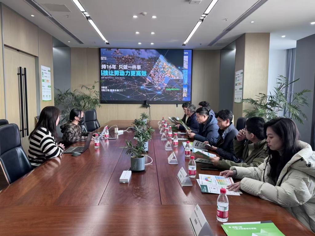 在盖雅工场,学院一行参观了企业展厅,详细了解盖雅在人效管理领域的最新成果和应用案例。盖雅工场负责人介绍了企业的发展历程、业务布局以及未来规划,并表达了对于数字化人才、数据分析人才的迫切需求。赵骥介绍了学院在相关领域的学科优势、人才培养特色以及毕业生情况,双方就校企合作各个方面达成初步合作意向。