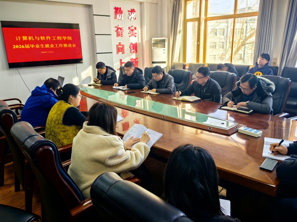 为扎实推进2026届毕业生就业工作,实现毕业生高质量充分就业,1月8日,计算机学院召开2026届毕业生就业工作推进会。会议由学院党委书记陶润城主持,学院领导班子成员、各系(中心)主任、毕业班辅导员及班主任参会。