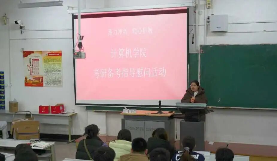 为进一步关心关爱考研学子,助力2026届毕业生决战考研冲刺阶段,12月9日,计算机与软件工程学院在博学楼A201开展“蓄力冲刺·暖心护航”考研备考指导慰问活动。