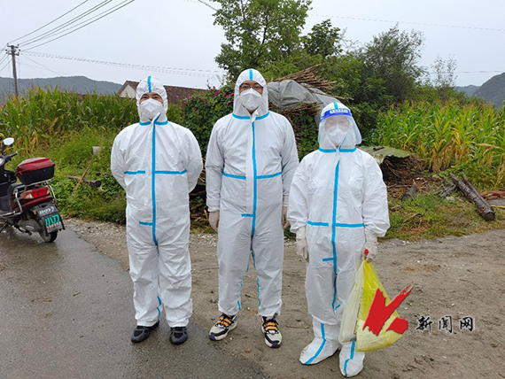 陈宇翔同村干部、大学生志愿者早起进行核酸采样