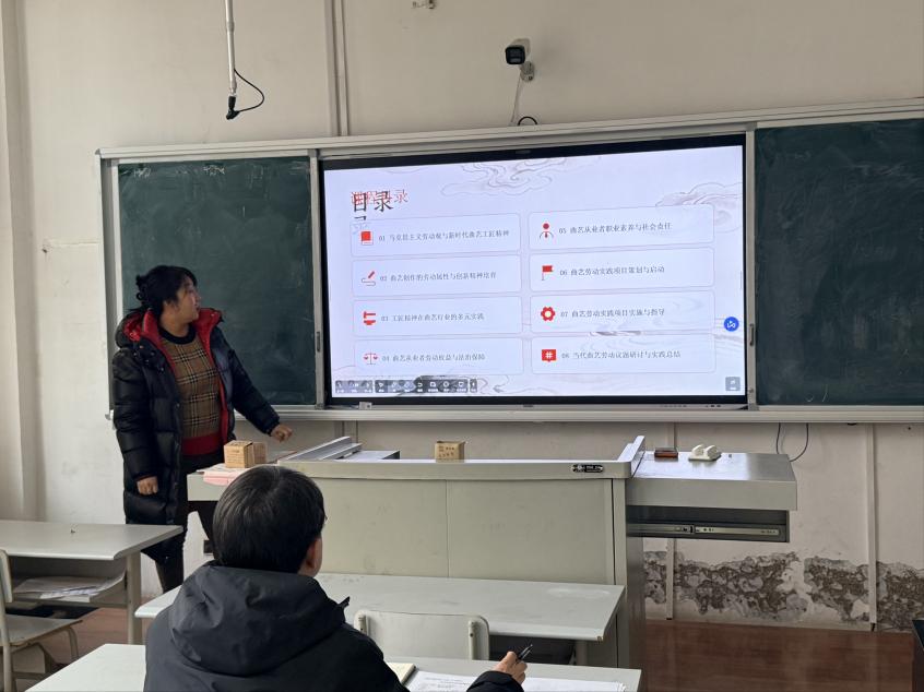 曲丹老师讲授《劳动教育》课程,采取理论与实践相结合的模块化教学,融入典型人物视频案例,深入阐释新时代劳动精神与工匠精神,实现思政教育与专业教学有机融合。