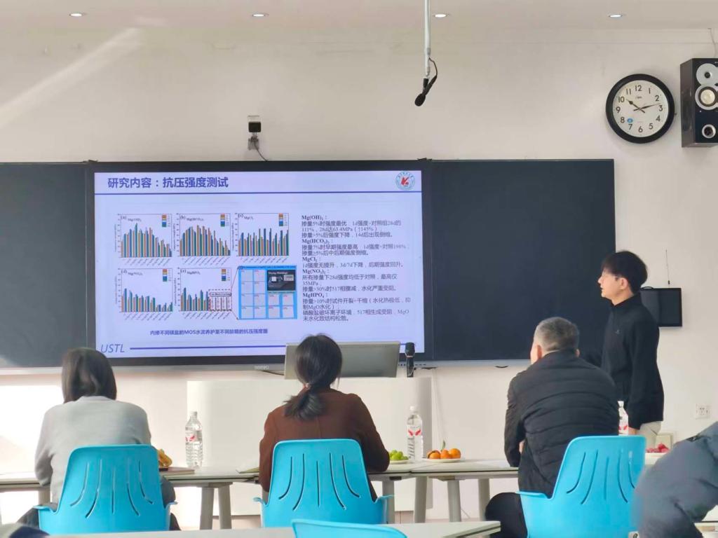硕士研究生汇报环节同样精彩纷呈。17名硕士研究生先后展示了他们在多个领域的最新研究进展,涵盖脱硫脱硝一体化吸附剂开发、Ni/Ni-Cu合金镀层性能优化、高速连铸结晶器铸坯质量控制以及钛钢复合板制备工艺等方向。汇报人通过清晰的逻辑、详实的数据支撑与直观的图表展示,系统呈现了各自研究的创新点与技术突破。这种严谨的科研态度和专业的表达能力,反映了学院研究生培养的质量水准。