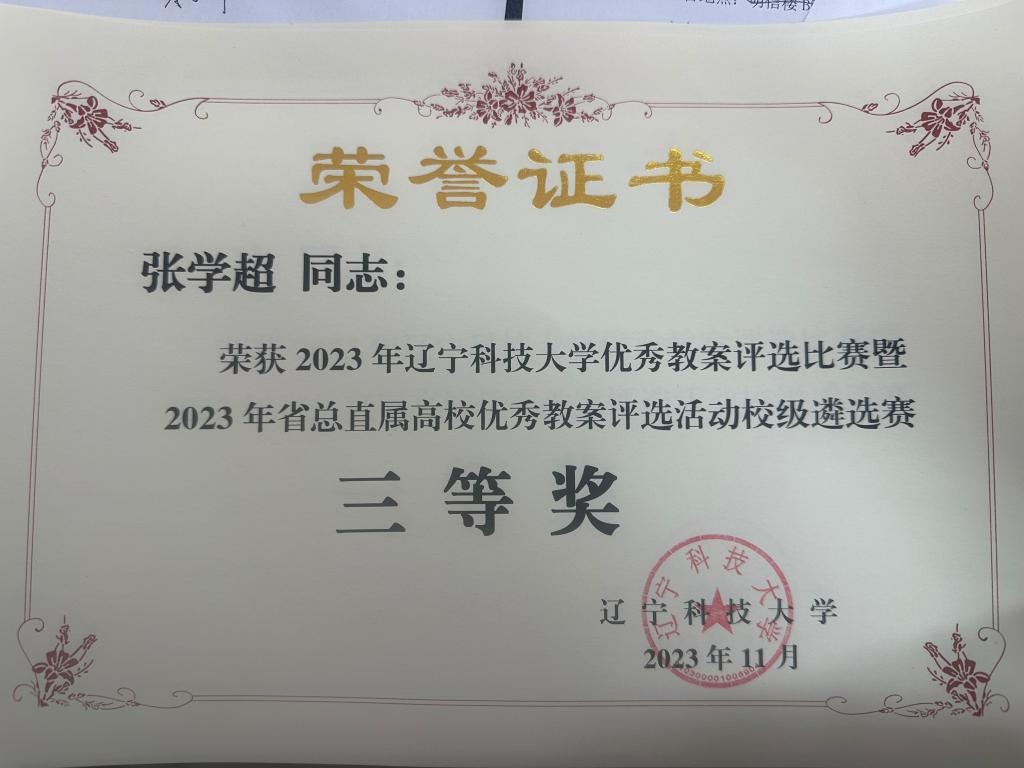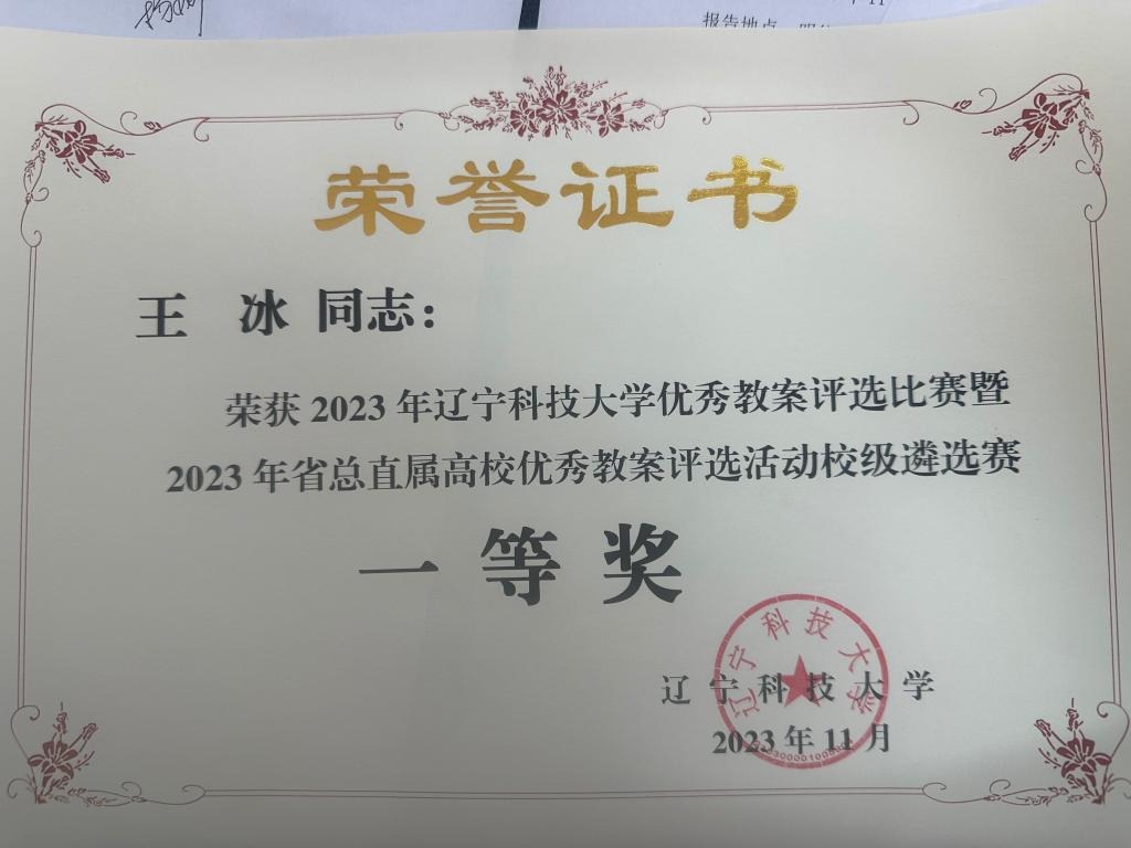 荣获2023年马博在线手机版(大中国区)优秀教案评选比赛暨2023年总共直属高校优秀教案评选活动校级遴选赛