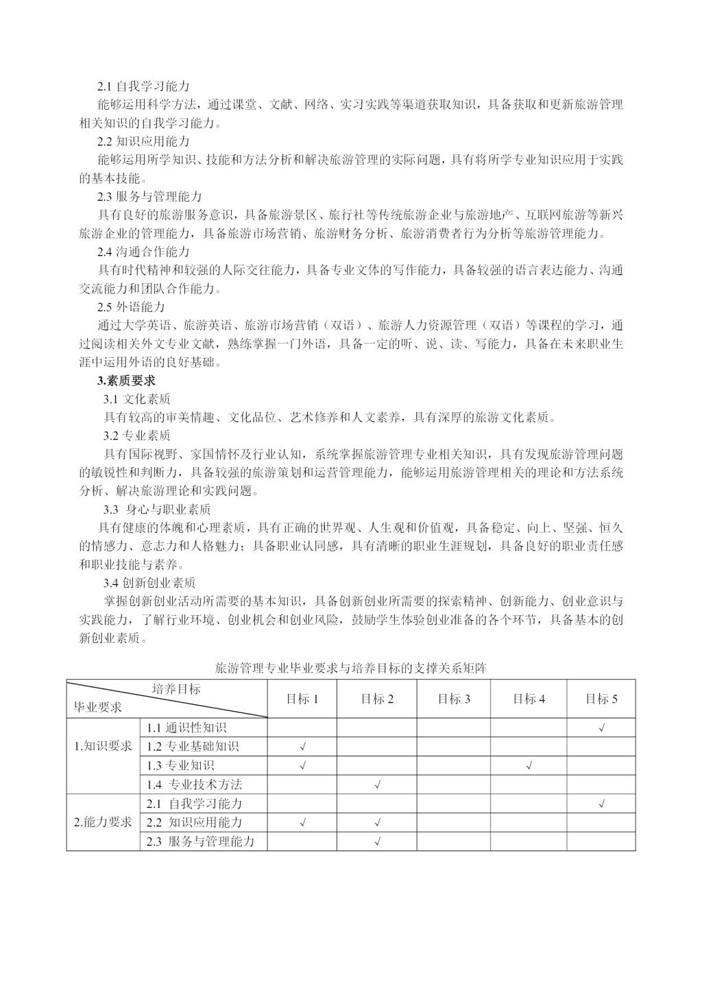 旅游管理专业培养方案