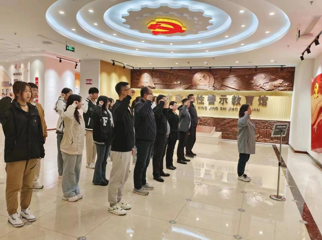 活动中,任成好带领大家面向党旗重温入党誓词。董文武作为教师党员代表重温入党志愿书、入团志愿书,并在感言中谈到,要坚定理想信念、提升思想境界、加强党性锻炼,始终保持共产党人的高尚品格和廉洁操守;张鑫洋作为学生党员代表重温入党志愿书、入团志愿书,并表示将牢记入党誓言,加强自身思想建设,积极创先争优,主动发挥先锋模范作用。随后,大家参观了警示教育馆,共同感受中国共产党百年逐梦的恒心和反腐倡廉的决心。
