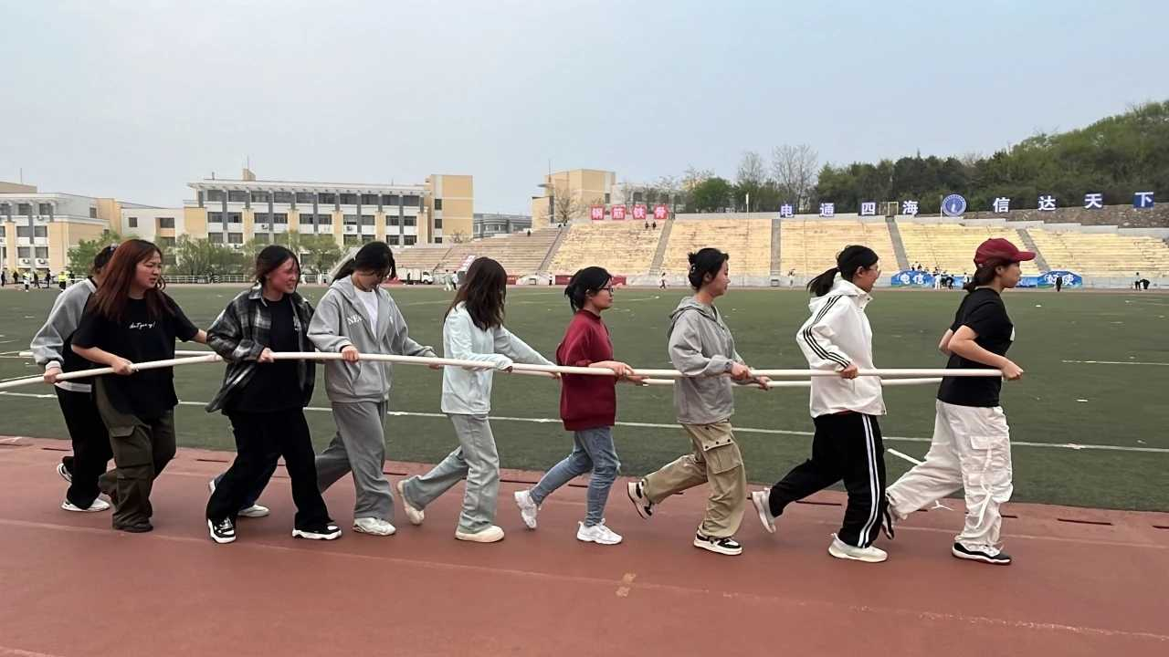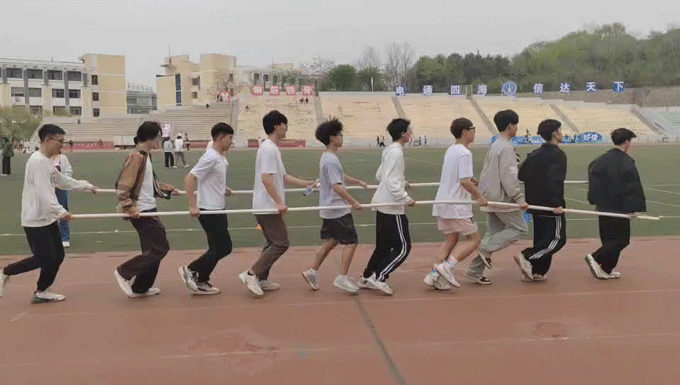 火车跑动,十人并肩,步伐一致,默契配合。速度飙升,激情四溢,长杆连接,信任坚定。赛道上,他们如一道闪电,挑战自我,超越极限,展现出勇往直前的精神风貌。