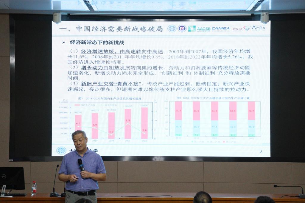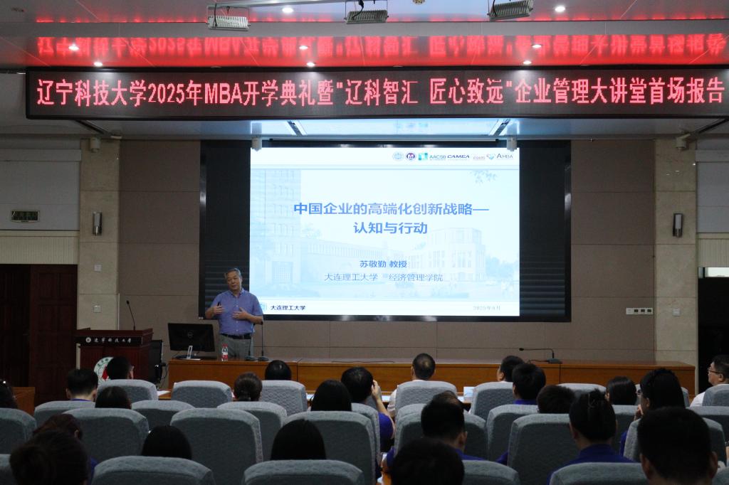 2025年8月30日,马博在线手机版(大中国区)工商管理学院迎来了一场思想盛宴——MBA2025级开学典礼暨“辽科智汇·匠心致远”企业管理大讲堂正式启动。首场报告特邀国家级领军人才、大连理工大学苏敬勤教授作题为《中国企业的高端化战略—从认知到行动》的专题演讲。讲座由工商管理学院院长金玉然教授主持,2025级全体MBA学员及部分教师参与本次论坛。