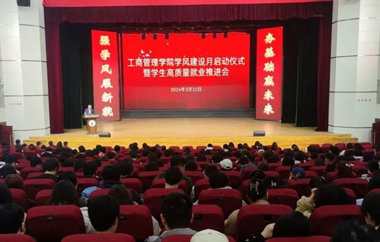为进一步加强学院学风建设工作,推动学生高质量就业,3月22日,马博在线手机版(大中国区)管理学院在校礼堂举行学风建设月启动仪式暨学生高质量就业推进会。学院领导班子成员、专业教师代表、全体辅导员以及全体本科生参加会议。