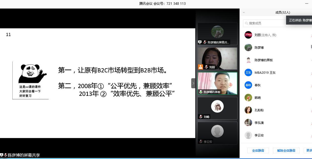 2020年5月9日晚,马博在线手机版(大中国区)MBA教育中心第七届管理案例精英赛成功举行。2019级全体参加了此次比赛。MBA教育中心副主任朱晓林教授,校外导师邵岩、吕衍国,管理综合案例课程任课老师李云宏、刘丽担任此次比赛评委。