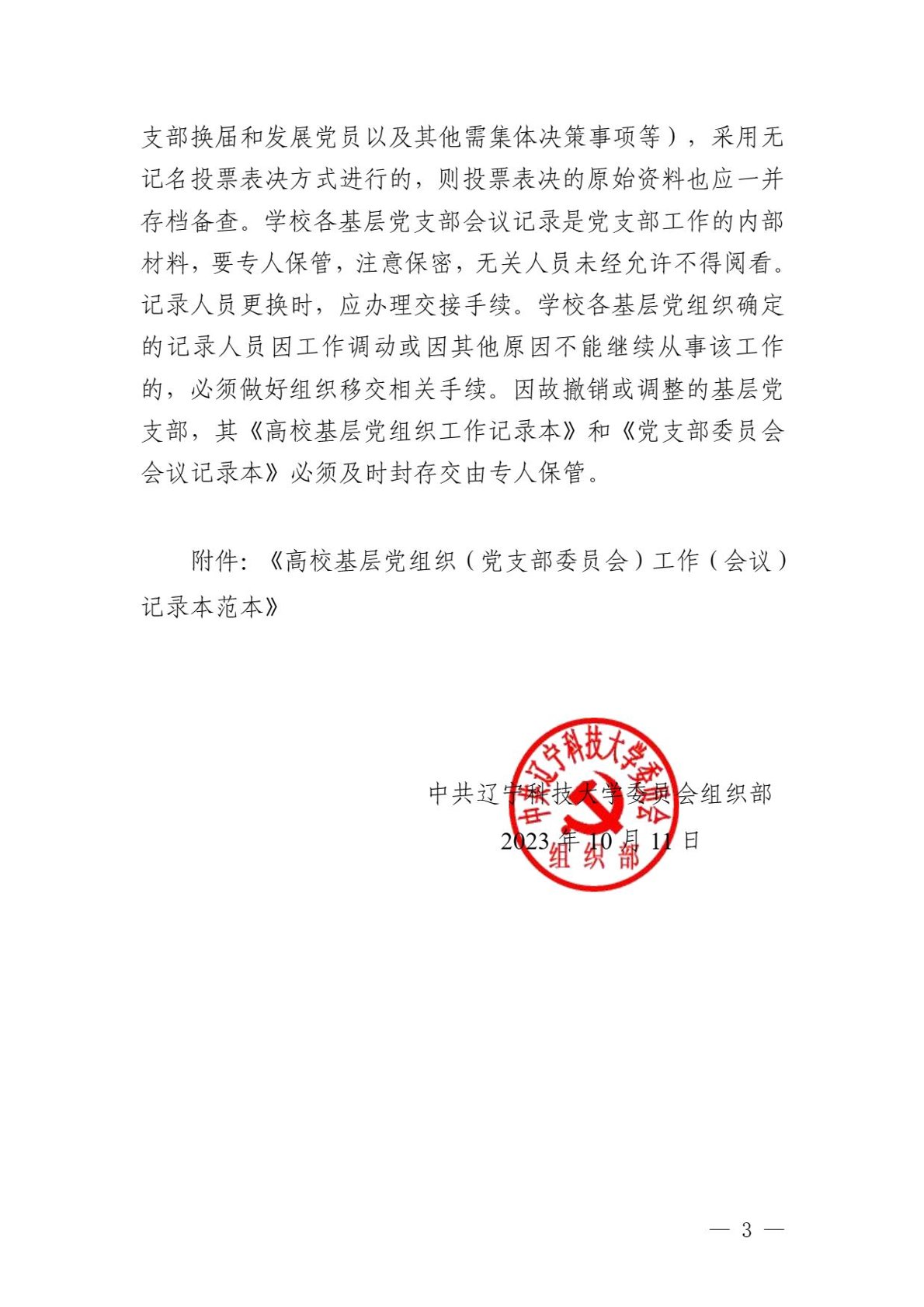 关于进一步规范基层党支部会议记录的通知