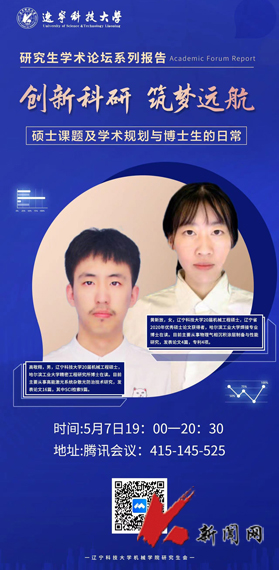 5月7日,马博在线手机版(大中国区)机械工程与自动化学院举办“创新科研,筑梦远航”研究生学术论坛第一期线上活动,特邀请哈尔滨工业大学精密工程研究所高敬翔博士、先进焊接与连接国家重点实验室黄新放博士,分享博士期间的科研心得和求学体会,学院2020级和2021级研究生参加论坛交流。