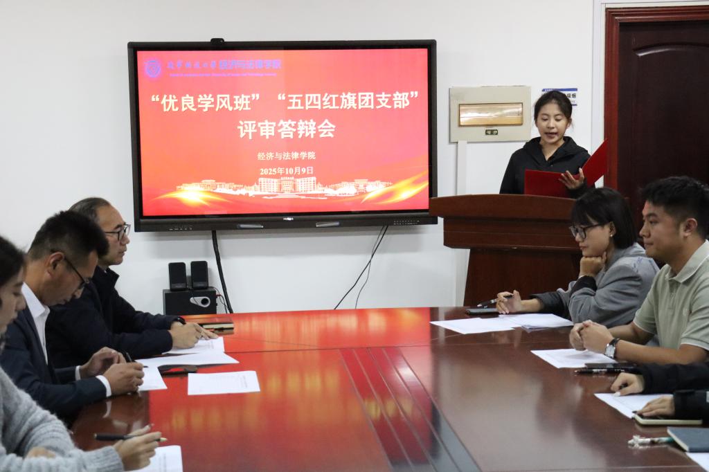 为进一步深化班级学风建设,激发基层团组织活力,10月9日,经济与法律学院在博识楼A305举办优良学风班和五四红旗团支部评比答辩会。学院党委书记赵智博、党委副书记张国华、学生工作办公室主任李路云、团委书记张鹏飞,以及学生代表和各团支部代表参加了本次活动。