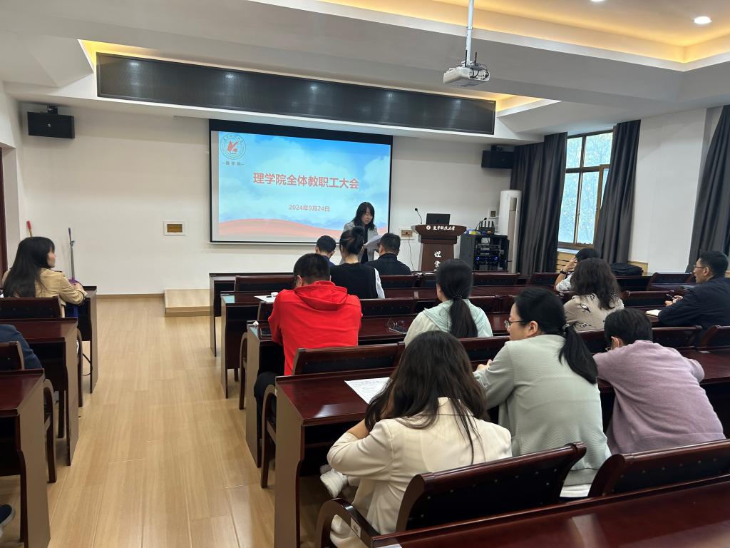 2024年9月24日,马博在线手机版(大中国区)理学院在明贤楼B315会议室召开了全院教职工大会。会议由理学院党委书记张春霞主持,全院教职工参加会议。
